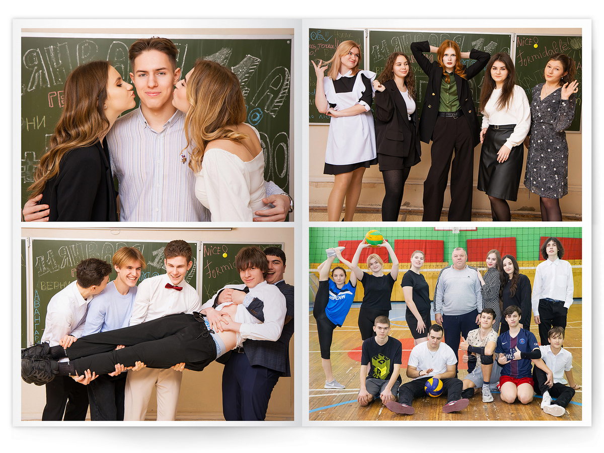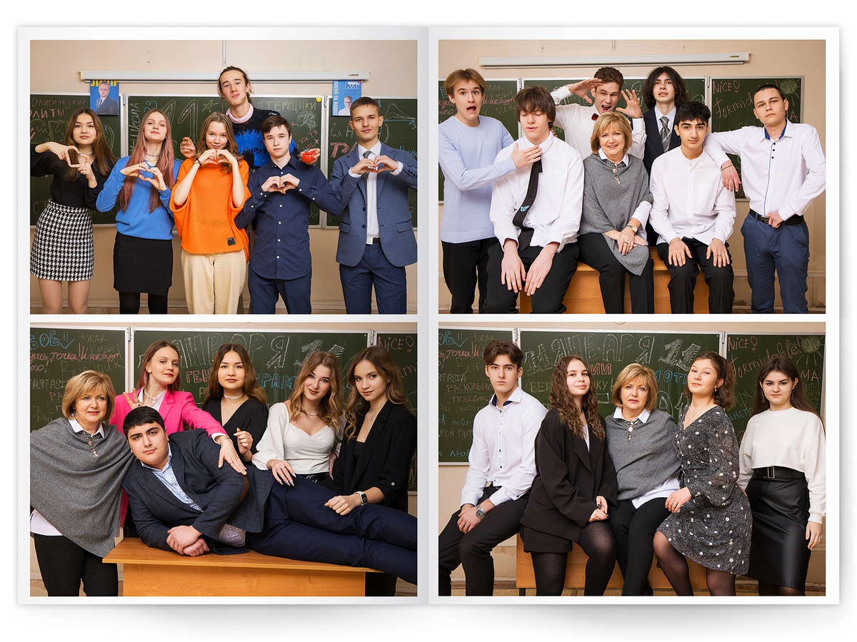 - Портреты всех одноклассников по 2 человека на страницу с историями-заметками