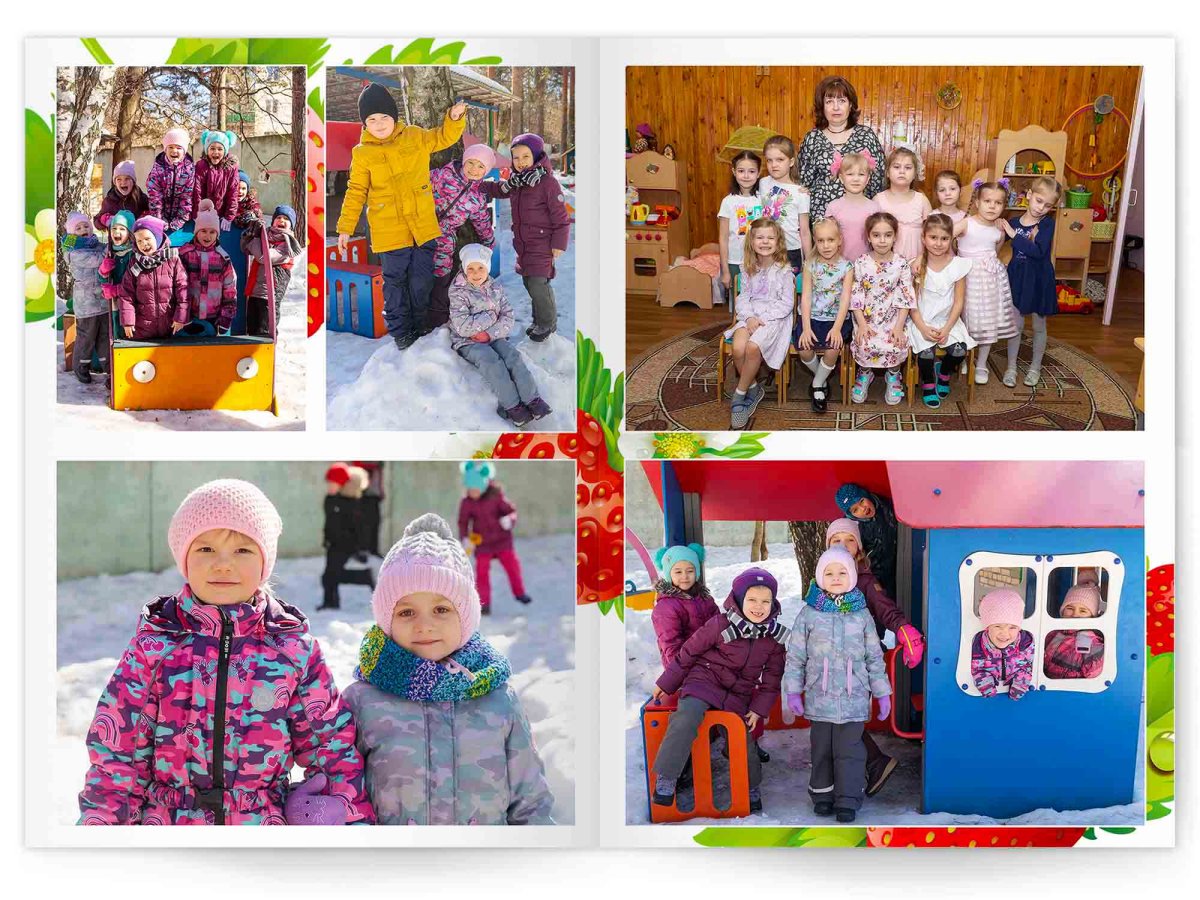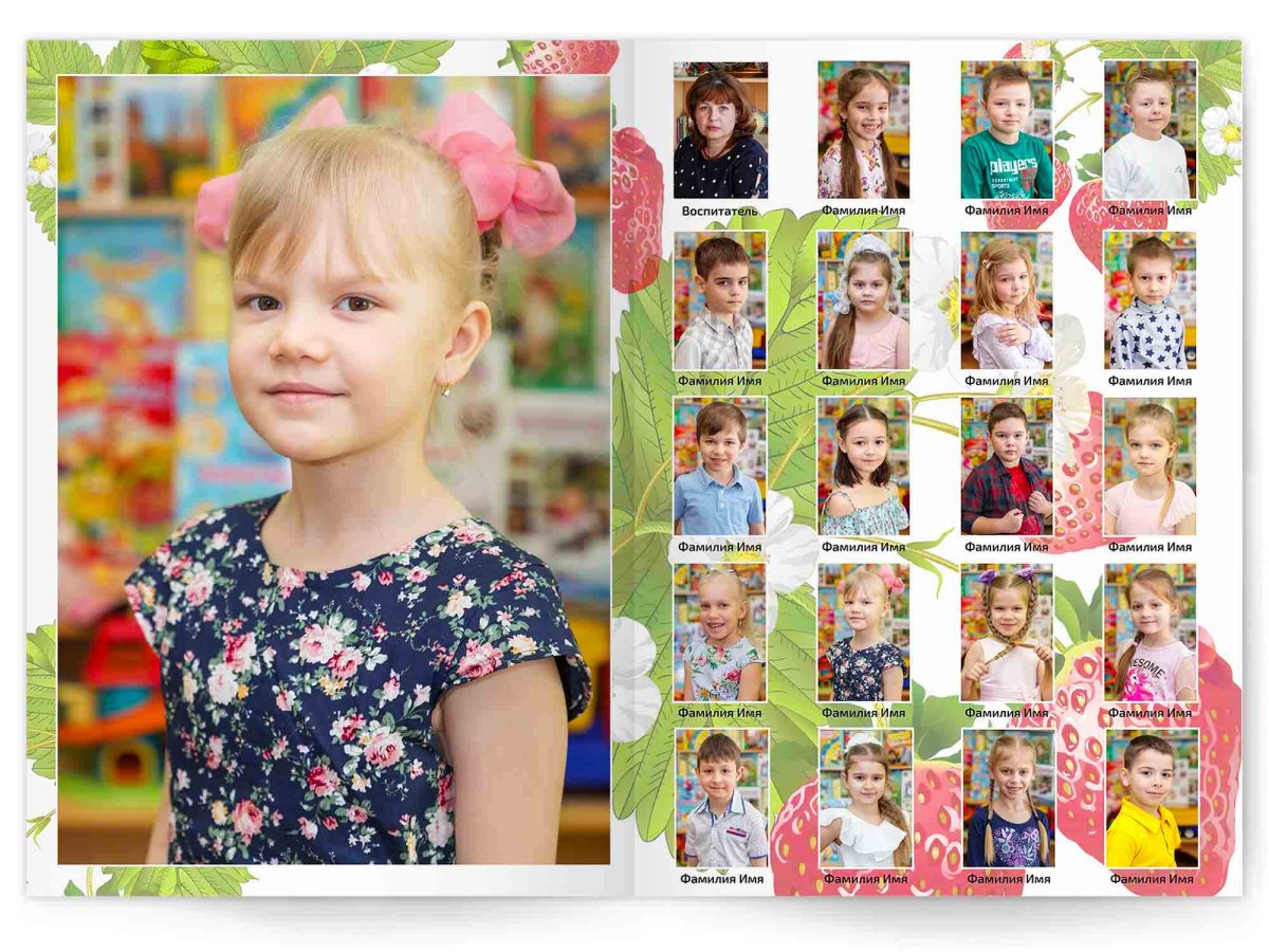 • Портреты всех детей и воспитателей на развороте