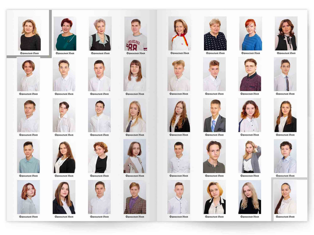 • Портреты всех одноклассников по 2 человека на страницу с историями-заметками